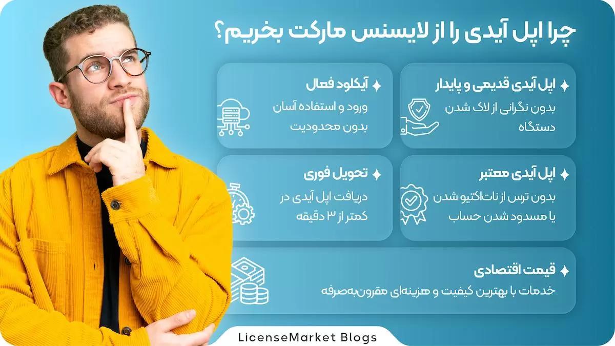 مزیت اپل آیدی های ارائه شده توسط لایسنس مارکت در این است که بر خلاف تمامی فروشگاههای موجود، فعال سازی اپل آیدی بهصورت کاملاً اختصاصی بر روی ایمیل شخصی شما انجام میشود ایمیلهای مربوط به اپل به ایمیل شخصی شما ارسال خواهد شد.